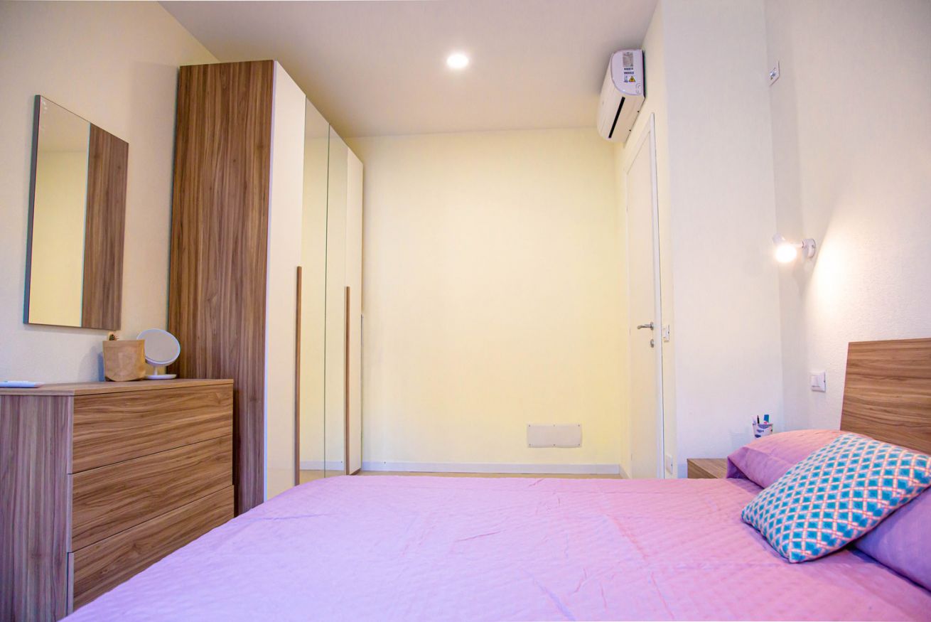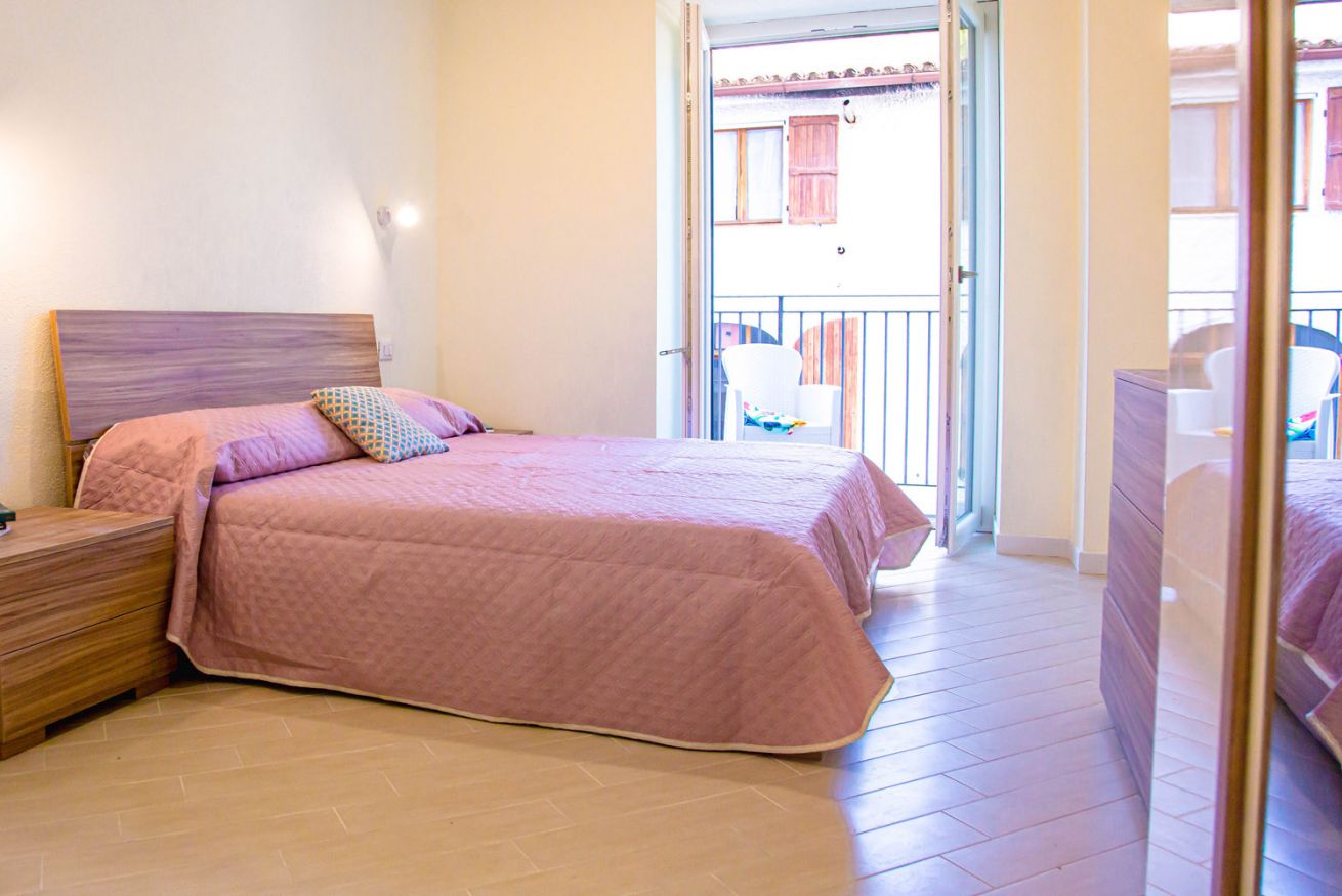 La camera da letto matrimoniale e dotata di balcone , ampio guardaroba, specchio e cassettiera.